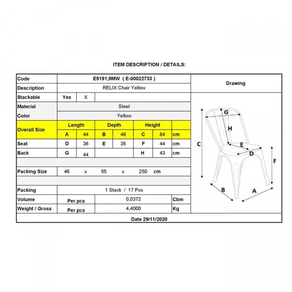RELIX Καρέκλα Στοιβαζόμενη Μέταλλο Βαφή Κίτρινο Matte c542795