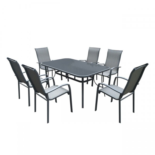 Set Τραπεζαρία Κήπου: Μέταλλο - Textilene Ανθρακί, :Τραπέζι 160x96 + 6 Πολυθρόνες
