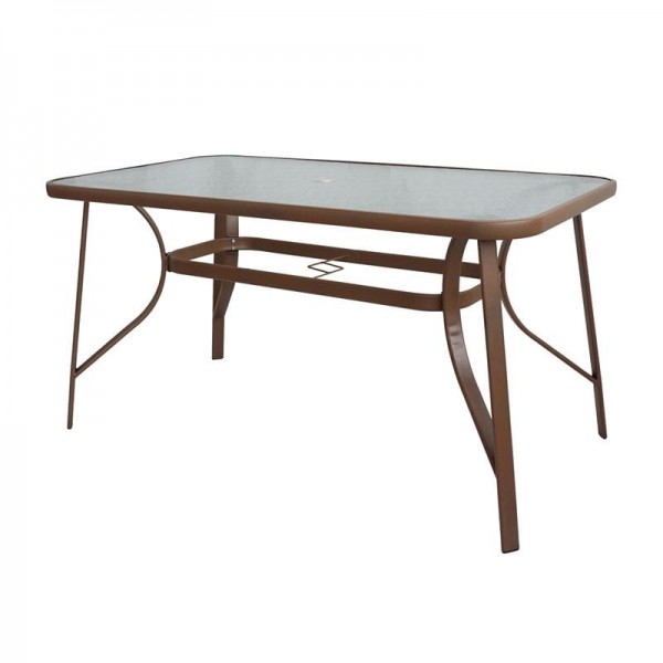 Reno Τραπέζι Κήπου Βεράντας Μέταλλο Βαφή Καφέ Γυαλί