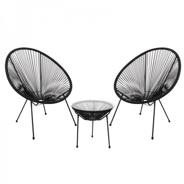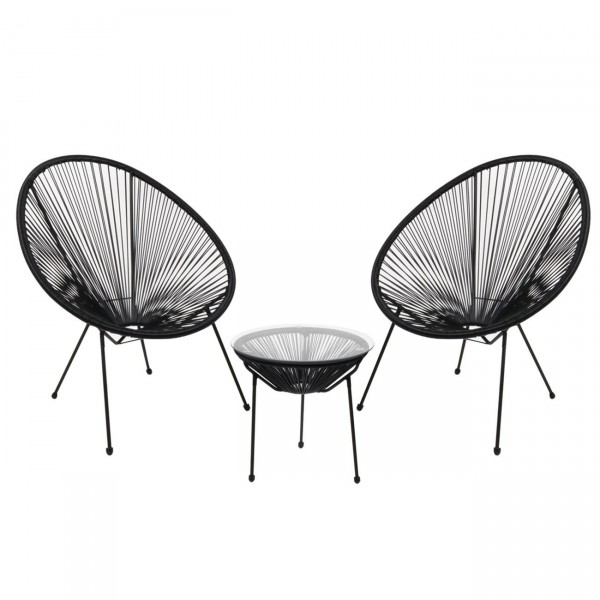 Set Κήπου - Βεράντας: Τραπέζι + 2 Πολυθρόνες Μέταλλο Μαύρο / Rattan Μαύρο