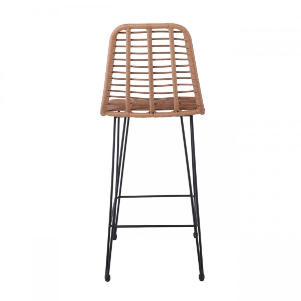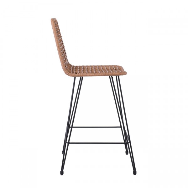 Salin Σκαμπό BAR-Pro με Πλάτη Μέταλλο Βαφή Μαύρο Wicker Φυσικό c531451