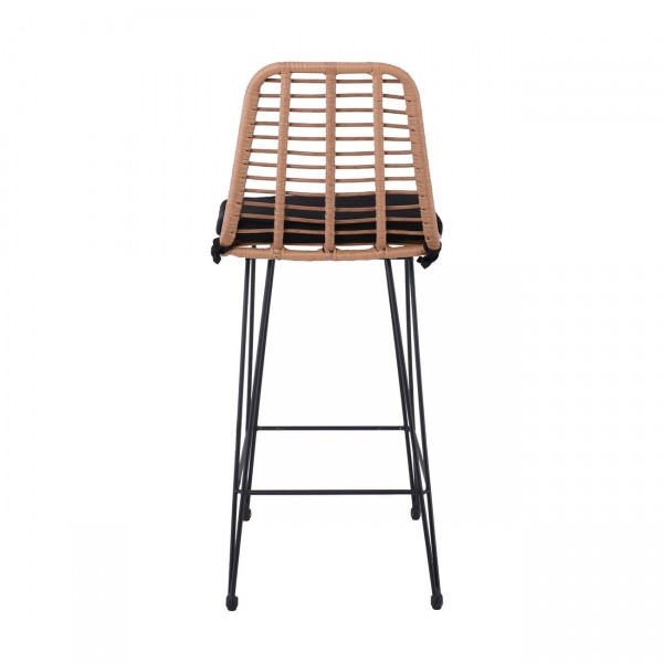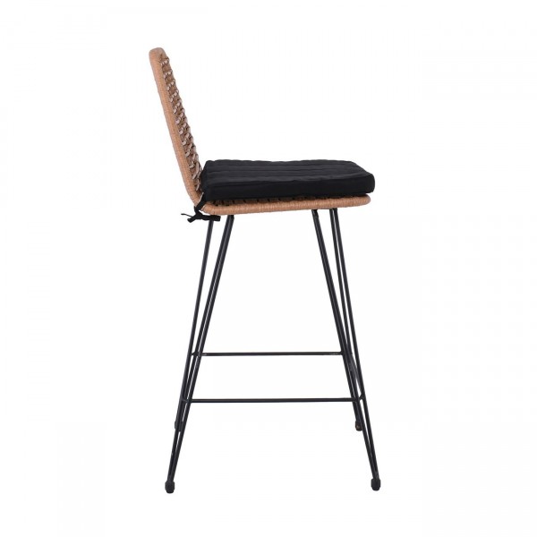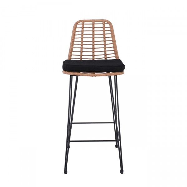 Σκαμπό BAR-Pro με Πλάτη, Μέταλλο Βαφή Μαύρο - Wicker Φυσικό, με Μαξιλάρι Μαύρο