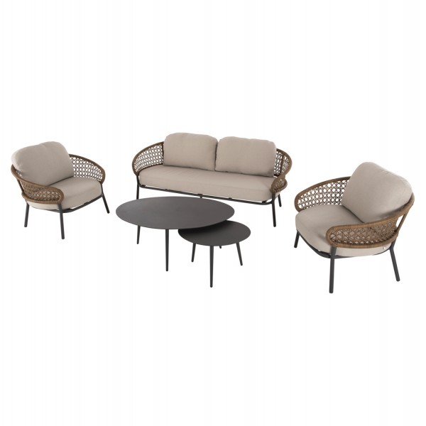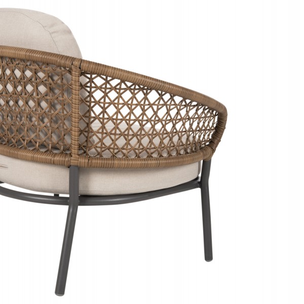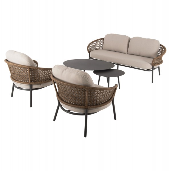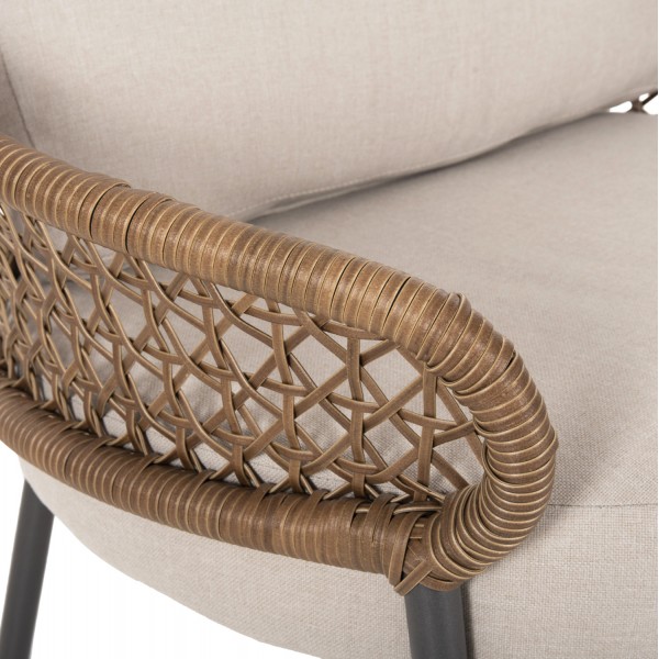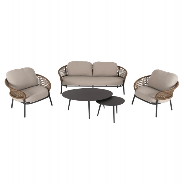 Σας παρουσιάζουμε το όμορφο σετ σαλονιού εξωτερικού χώρου BREY σε συνδυασμό χρωμάτων που θα λατρέψετε, με 2 τραπεζάκια, 2 πολυθρόνες και 1 διθέσιο καναπέ. Ο σκελετός σε όλο το σετ είναι από αλουμίνιο επενδυμένο με συνθετικό RATTAN σε ΧΑΚΙ χρώμα. Το design τους είναι πανέμορφο στην όψη ενώ η στιβαρότητά τους είναι εμφανής. Τα δύο τραπεζάκια με την οβάλ ΓΚΡΙ επιφάνεια είναι πρακτικότατα, ενώ οι πολυθρόνες είναι φαρδιές με πλάτη ημικυκλική και αγκαλιάζουν το σώμα πράγμα που επιτείνει την άνεση που προσφέρουν, σε συνδυασμό με τα αναπαυτικά μαξιλάρια τόσο στο κάθισμα όσο και στην πλάτη. Ο διθέσιος καναπές σε παρόμοιο design είναι, όμως, το πιο εντυπωσιακό κομμάτι αυτού του σετ που τον καθιστούν το σημείο αναφοράς. Τα μαξιλάρια σε όλο το σετ είναι επενδυμένα με πολυεστερικό ύφασμα σε ΜΠΕΖ χρώμα και διαθέτουν γέμισμα με μέτριας σκληρότητας αφρώδη υλικά για την μεγαλύτερη δυνατή άνεση, αλλά και φερμουάρ. Τι άλλο να ζητήσει κανείς για να αναβαθμίσει τον εξωτερικό χώρο της επιχείρησής του;