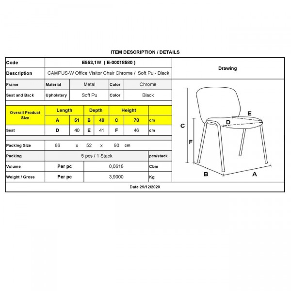 Καρέκλα Γραφείου Επισκέπτη - Στοιβαζόμενη
