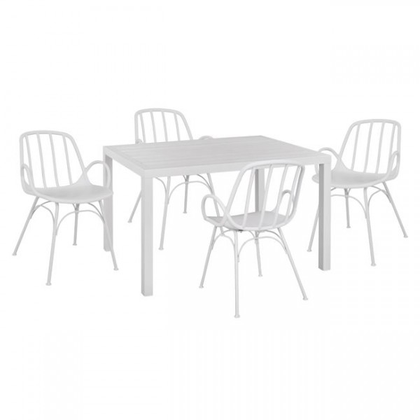 Τέσσερις πολυθρόνες από 100% πολυπροπυλένιο υψηλής ποιότητας σε λευκή απόχρωση.