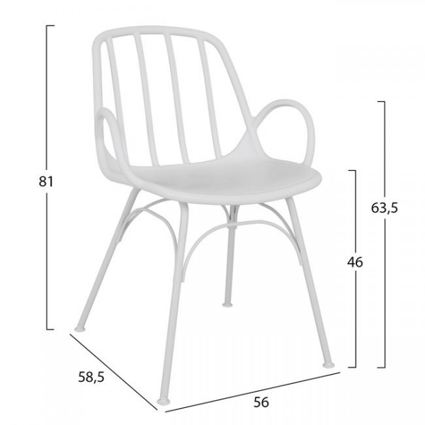 Διαστάσεις: 56x58,5x81 εκ.Ύψος καθίσματος: 46 εκ.Ύψος μπράτσων: 63,5 εκ.Διαστάσεις καθίσματος: 43x42 εκ.