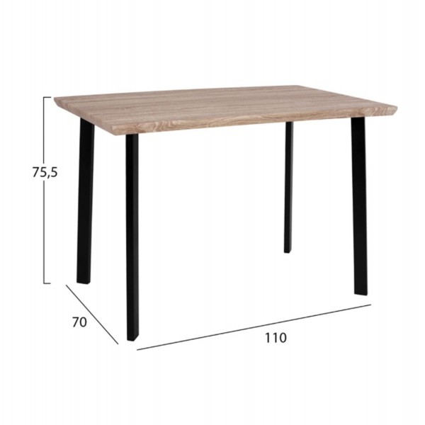 - ένα ελκυστικό μοντέρνο τραπέζι με μεταλλική βάση μαύρης απόχρωσης και sonama επιφάνεια από mdf.