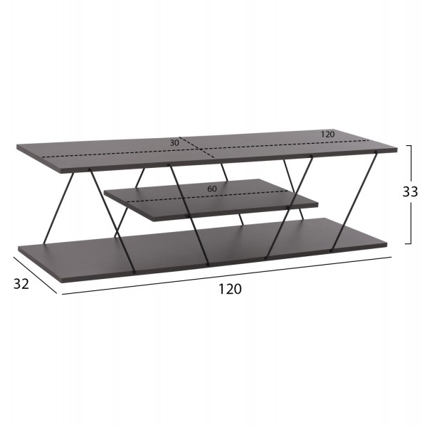 Hm8922.20- Έπιπλο τηλεόρασης με μοντέρνο design από μελαμίνη και μεταλλικές ακτίνες σε χρώμα σκούρο γκρι.