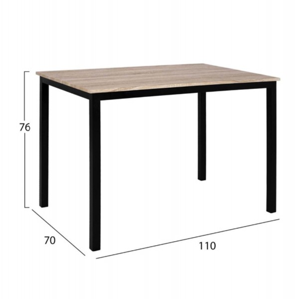 - ένα ελκυστικό μοντέρνο τραπέζι με μεταλλική βάση μαύρης απόχρωσης και sonama επιφάνεια από mdf.