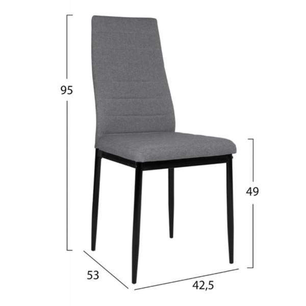-Και 4 καρέκλες από μεταλλικό σκελετό σε μαύρο χρώμα και επένδυση από ύφασμα σε γκρι απόχρωση.