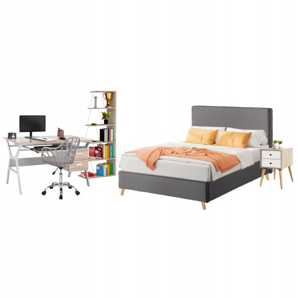 Αυτό το σετ περιλαμβάνει κρεβάτι, κομοδίνο, γραφείο, βιβλιοθήκη, καρέκλα γραφείου