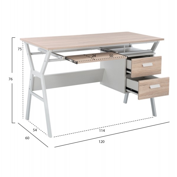 HM2130.01--Γραφείο μελαμίνης-μετάλλου σε sonoma-λευκό με δύο συρτάρια