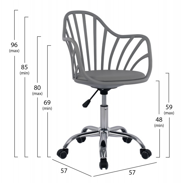HM8457.10--Καρέκλα γραφείου πολυπροπυλενίου σε γκρι χρώμα με χρωμιωμένη μεταλλική βάση