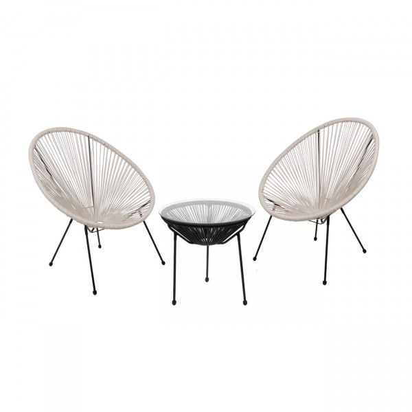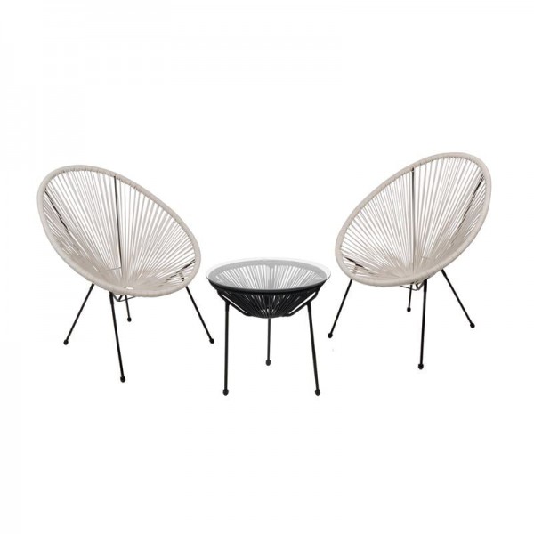 Set Κήπου - Βεράντας: Τραπέζι+2 Πολυθρόνες, Μέταλλο Μαύρο / Rattan Άσπρο & Μαύρο