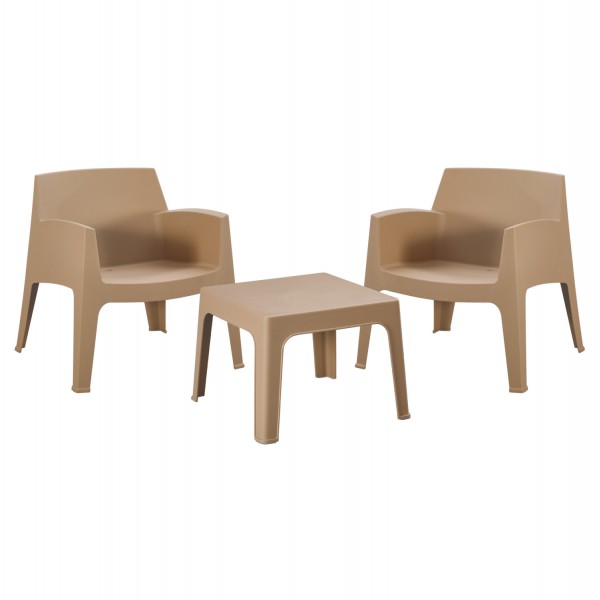 -1 τετράγωνο τραπεζάκι από χυτό πολυπροπυλένιο, όλα σε ΚΑΠΟΥΤΣΙΝΟ χρώμα.