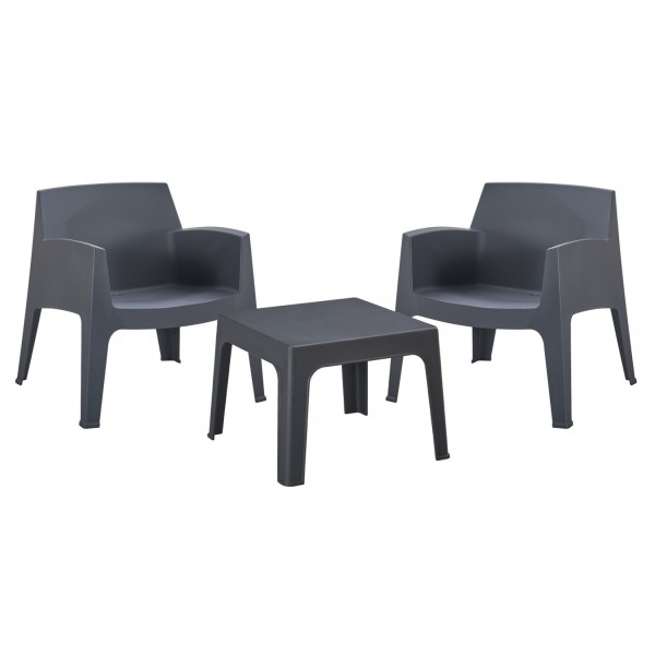 -1 τετράγωνο τραπεζάκι από χυτό πολυπροπυλένιο, όλα σε ΓΚΡΙ χρώμα.