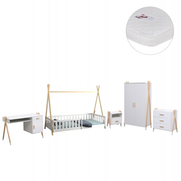 To σετ για παιδικό δωμάτιο 6τμχ PASCHAL περιλαμβάνει ένα κομοδίνο, ένα κρεβάτι τύπου Montessori με περιμετρικά κάγκελα μαζί με στρώμα, μια ντουλάπα, μια συρταριέρα, και ένα παιδικό γραφείο! Αναλυτικά: