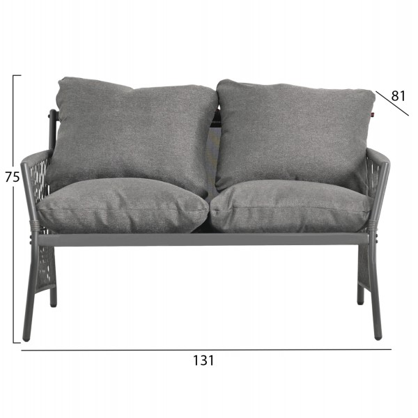 Το DEANDRA είναι ένα κομψό και απόλυτα ισορροπημένο σετ εξωτερικού χώρου που συνδυάζει σύγχρονη αισθητική με ανθεκτικά υλικά υψηλών προδιαγραφών. Ο σκελετός από γαλβανισμένο χάλυβα σε ΓΚΡΙ απόχρωση προσφέρει αυξημένη αντοχή στη διάβρωση και σταθερότητα, ενώ η επένδυση με σχοινί στο ίδιο χρώμα χαρίζει φυσική υφή και διαχρονική κομψότητα.