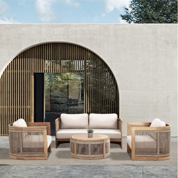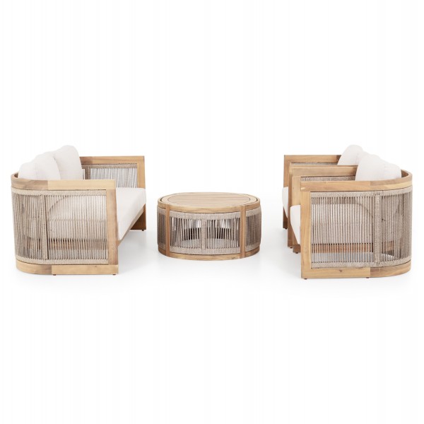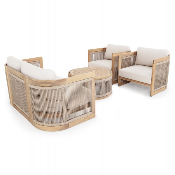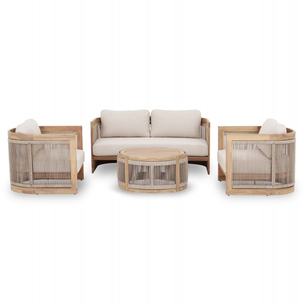 Το σετ σαλόνι εξωτερικού χώρου ODYSSEY είναι η επιτομή της πολυτέλειας συνδυασμένης με απαράμιλλη ποιότητα. Αποτελείται από έναν 2-θέσιο καναπέ, 2 πολυθρόνες, και ένα στρογγυλό τραπεζάκι. Ο σκελετός είναι από ξύλο ακακίας σε ΦΥΣΙΚΟ χρώμα με μαξιλάρια σε ΜΠΕΖ χρώμα, ενώ η επένδυση με σχοινί σε όλα τα κομμάτια του σετ δίνει μια ακόμα πιο «ζεστή» εικόνα στο σύνολο. Η αισθητική και τα γήινα χρώματα θα ταιριάξουν σε κάθε χώρο.
