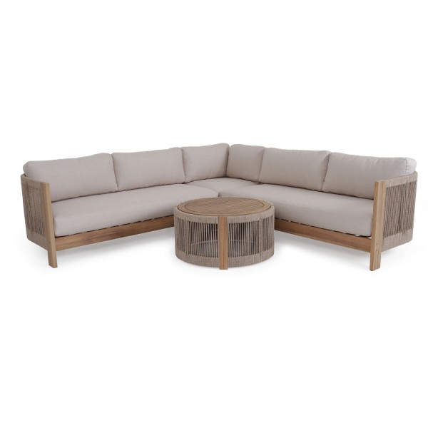 Το σετ γωνιακού καναπέ εξωτερικού χώρου ODYSSEY είναι η επιτομή της πολυτέλειας συνδυασμένης με απαράμιλλη ποιότητα. Αποτελείται από δύο 2-θέσιους καναπέδες, μία γωνία για να δέσει το σύνολο, και ένα στρογγυλό τραπεζάκι. Ο σκελετός είναι από ξύλο ακακίας σε ΦΥΣΙΚΟ χρώμα με μαξιλάρια σε ΜΠΕΖ χρώμα, ενώ η επένδυση με σχοινί στους καναπέδες και στο τραπεζάκι δίνει μια ακόμα πιο «ζεστή» εικόνα στο σύνολο. Η αισθητική και τα γήινα χρώματα κάθε σπιθαμής αυτού του σετ, θα ταιριάξουν σε κάθε χώρο.