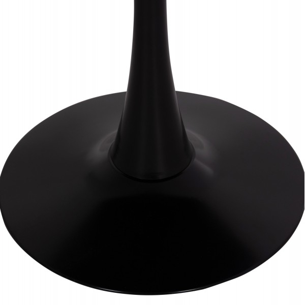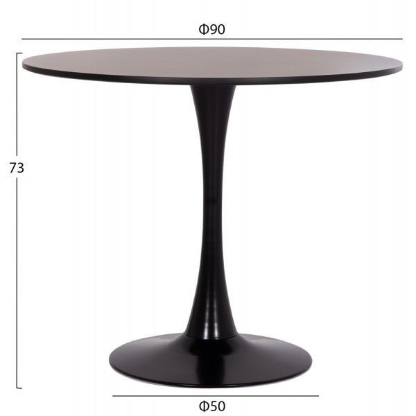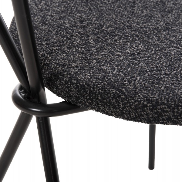 Ένα στρογγυλό τραπέζι με ΜΑΥΡΗ μεταλλική βάση/πόδι και επιφάνεια από MDF σε ΜΑΥΡΟ χρώμα, και 4 κομψότατες καρέκλες με κάθισμα και πλάτη επενδυμένα με ανάγλυφο ύφασμα σε ΣΚΟΥΡΟ ΓΚΡΙ χρώμα, και μεταλλικά πόδια σε ΜΑΥΡΟ χρώμα. Η όμορφη λεπτομέρεια στις καρέκλες είναι ότι ο σκελετός καταλήγει σε ένα όμορφο χερούλι στην πλάτη.