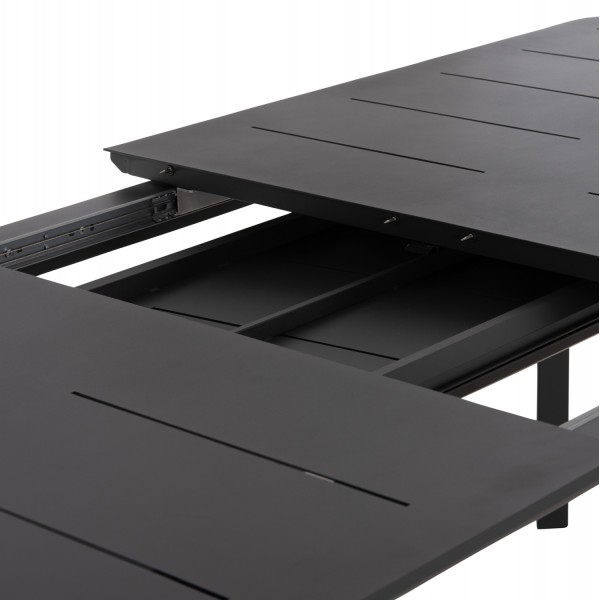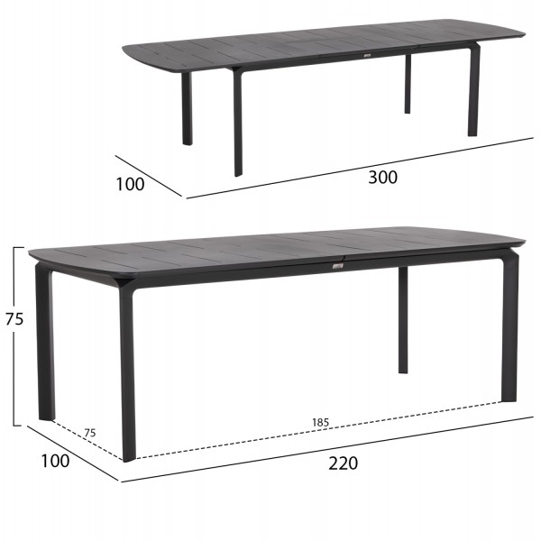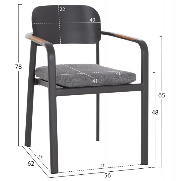Ένα ορθογώνιο ΕΠΕΚΤΕΙΝΟΜΕΝΟ τραπέζι εξολοκλήρου από αλουμίνιο σε ΓΚΡΙ χρώμα, και 6 καρέκλες αλουμινίου σε ΓΚΡΙ με όμορφη minimal πλάτη και μαξιλάρι καθίσματος πάχους 3εκ με επένδυση από OLEFIN ύφασμα και αφρό γεμίσματος ποιότητας 25D για εξαιρετική αίσθηση κατά την χρήση, ενώ η λεπτομέρεια με το ξύλο teak στα μπράτσα ανεβάζει τον πήχυ της ποιότητας.