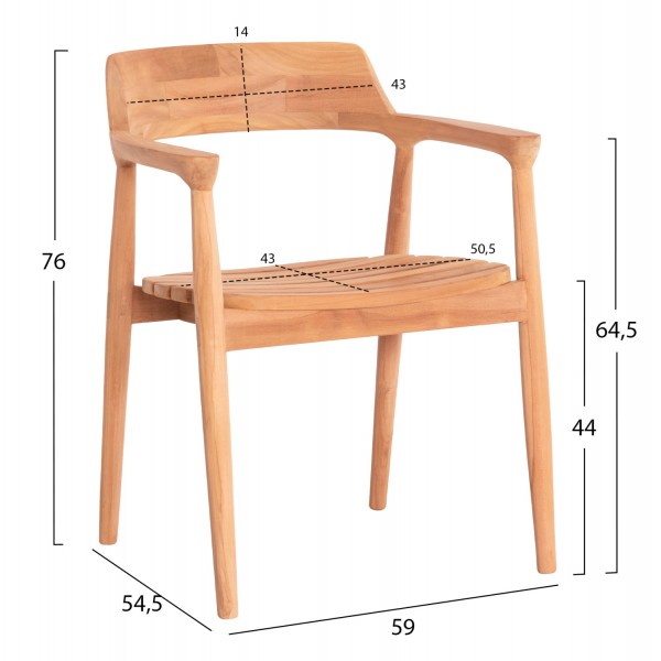 Μασίφ φυσικό ξύλο TEAK, γνωστό για την εξαιρετική αντοχή του στην υγρασία, τη σταθερότητά του και την αισθητική του αξία.