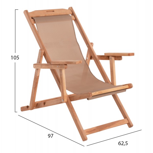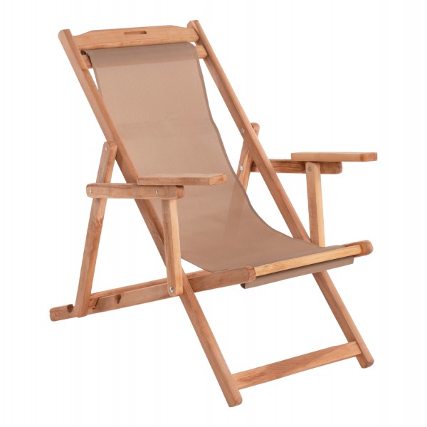 Η ξύλινη σεζλόνγκ παραλίας με μπράτσα ΛΗΜΝΟΣ σε ΦΥΣΙΚΟ χρώμα εμποτισμού είναι μια μοντέρνα και πολυτελής πρόταση για την παραλία. Η ξύλινη κατασκευή της την κάνει απίστευτα ανθεκτική και στιβαρή και το ΜΟΚΑ textilene πανί ταιριάζει όμορφα με τον ΦΥΣΙΚΟ σκελετό. Η σκαλιέρα έχει 3 θέσεις ανάκλισης προσφέροντας την πολυπόθητη άνεση που αναζητάτε στην παραλία.