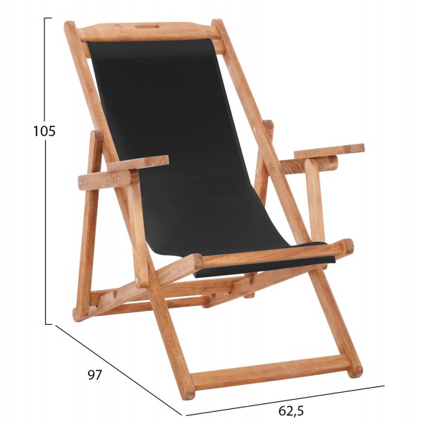 Σεζλόνγκ Λήμνος με μπράτσα σε φυσική απόχρωση και pvc μαύρο 62,5x97x105 εκ.
