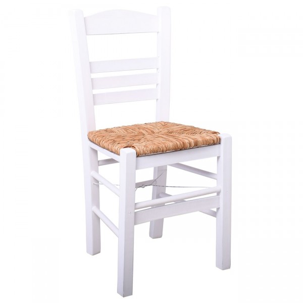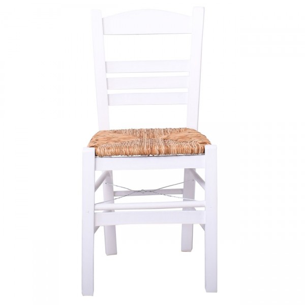 Καρέκλα Οξιά Βαφή Εμποτισμού Λάκα Άσπρο, Κάθισμα Ψάθα