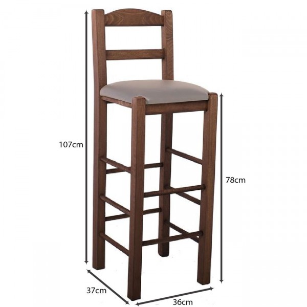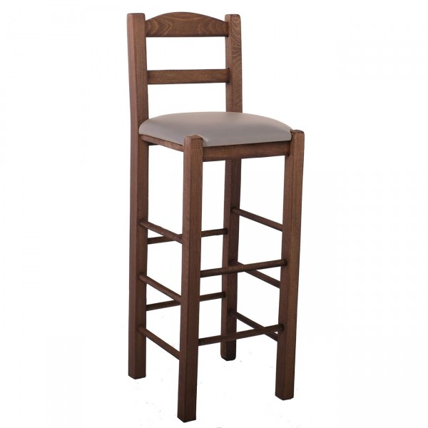 Σκαμπό BAR με Πλάτη, Οξιά Βαφή Εμποτισμός Καρυδί, Κάθισμα Pu Cappuccino