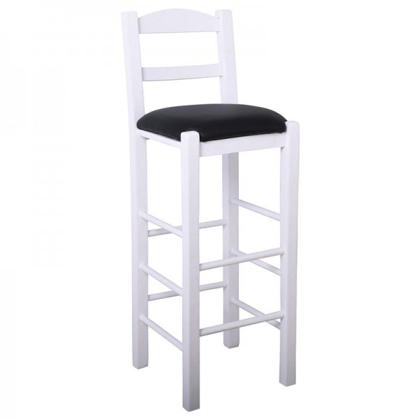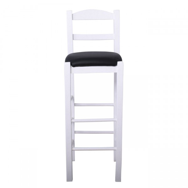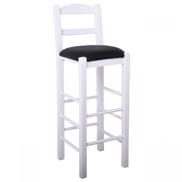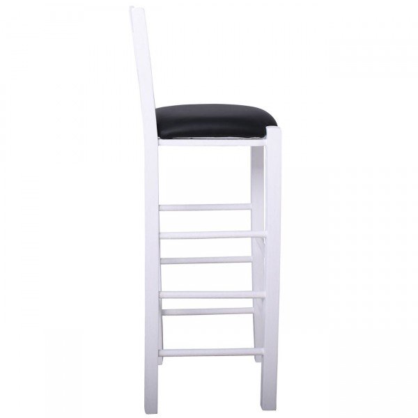 Σκαμπό BAR με Πλάτη, Οξιά Βαφή Εμποτισμός Λάκα Άσπρο, Κάθισμα Pu Μαύρο