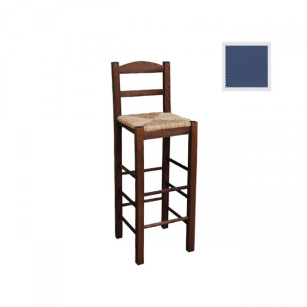 ΣΙΦΝΟΣ Σκαμπό BAR με Πλάτη, Οξιά Εμποτισμός Ανιλίνη Μπλε, Κάθισμα Ψάθα