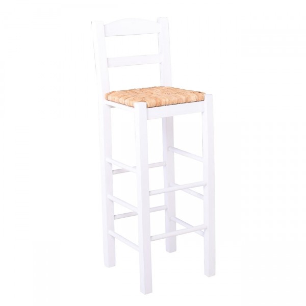 Σκαμπό BAR με Πλάτη, Οξιά Εμποτισμός Λάκα Άσπρο, Κάθισμα Ψάθα