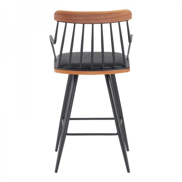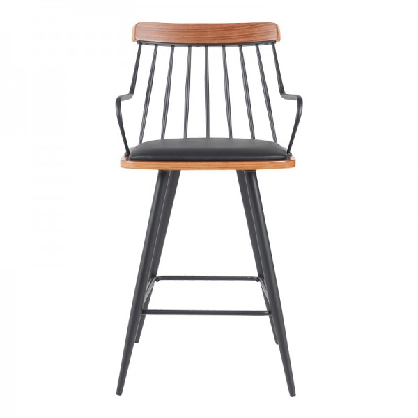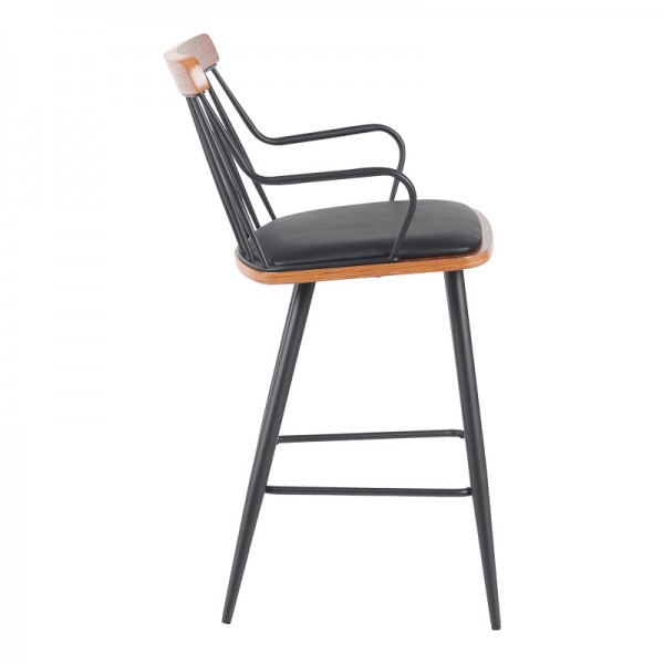 Το κομψό σκαμπό μπαρ Posse συνδυάζει με αρμονία φυσικά και βιομηχανικά στοιχεία. Διαθέτει ένα άνετο κάθισμα πλαισιωμένο από λεπτομέρειες σε ξύλο που προσδίδουν ζεστασιά. Η πλάτη αποτελείται από κάθετες, λεπτές μεταλλικές ράβδους που υποστηρίζονται από ένα οριζόντιο ξύλινο τμήμα στο επάνω μέρος, δημιουργώντας μια ενδιαφέρουσα οπτική αντίθεση. Οι λεπτές μεταλλικές χειρολαβές προσφέρουν άνεση και στυλ. Η σταθερή μεταλλική βάση με τέσσερα κωνικά πόδια και ενισχυτικό κυκλικό στήριγμα για τα πόδια εξασφαλίζει ανθεκτικότητα και λειτουργικότητα.
