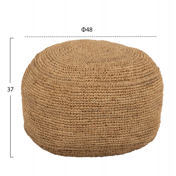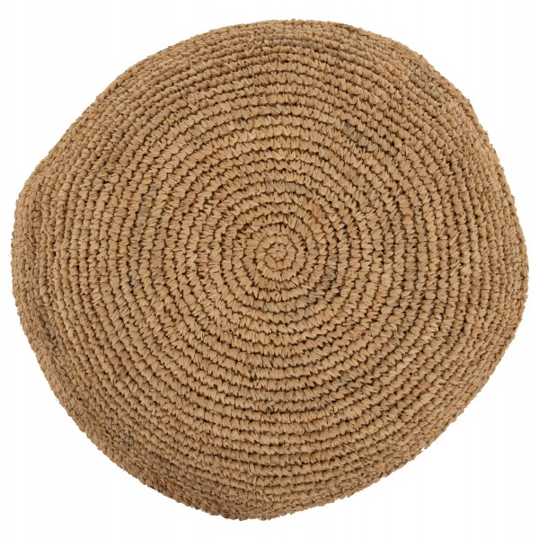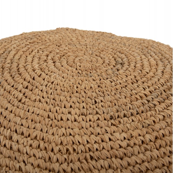 Το πουφ έχει φτιαχτεί από αποξηραμένες ίνες φοίνικα, που είναι γνωστός και ως Επιτραπέζιος Φοίνικας ή Φοίνικας βεντάλια. Αυτός είναι ένας πολύ ελκυστικός και κομψός φοίνικας με μεγάλα, λαμπερά φύλλα σε σχήμα βεντάλιας και αγκαθωτούς μίσχους. Φύεται στη Νοτιοανατολική Ασία και τη Νέα Γουινέα.