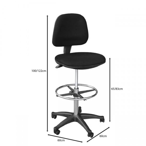 Σκαμπό Reception - Ταμείου με Πλάτη, Ύφασμα Μαύρο