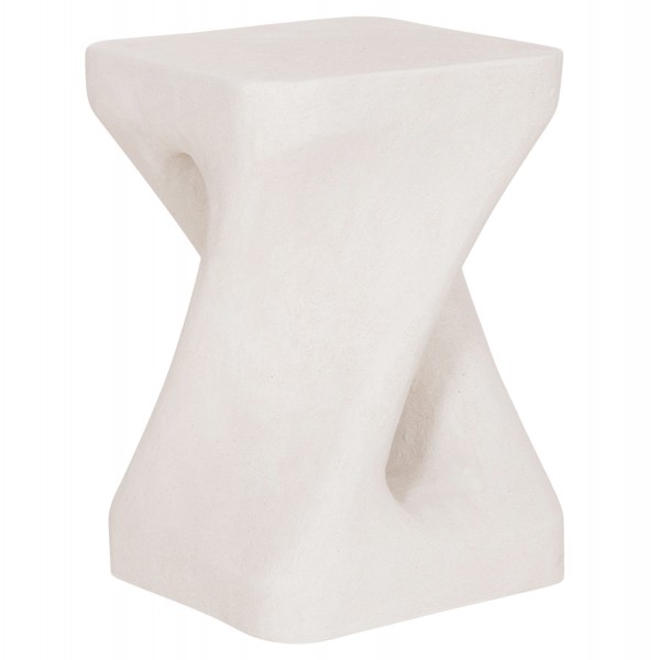 Το σκαμπό είναι κατασκευασμένο από polyresin (πολυρητίνη), ένα σύγχρονο συνθετικό υλικό υψηλής αντοχής που χρησιμοποιείται ευρέως σε premium διακοσμητικά αντικείμενα και έπιπλα design. Η πολυρητίνη προσφέρει σταθερότητα, ανθεκτικότητα στη χρήση και δυνατότητα δημιουργίας σύνθετων σχημάτων με ιδιαίτερη αισθητική. Η σαγρέ υφή στην επιφάνεια ενισχύει την αίσθηση φυσικού υλικού και χαρίζει στο αντικείμενο μια σύγχρονη, γλυπτική παρουσία.