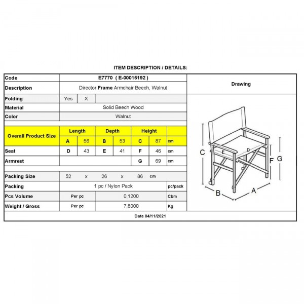 Σκηνοθέτη Σκελετός Πολυθρόνας Οξιά, Βαφή Εμποτισμού Μελί, Πτυσσόμενη
