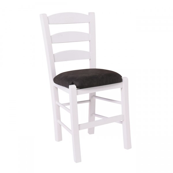 ΣΚΥΡΟΣ Καρέκλα Οξιά Βαφή Εμποτισμού Λάκα Άσπρο Κάθισμα Suede Ανθρακί c542339