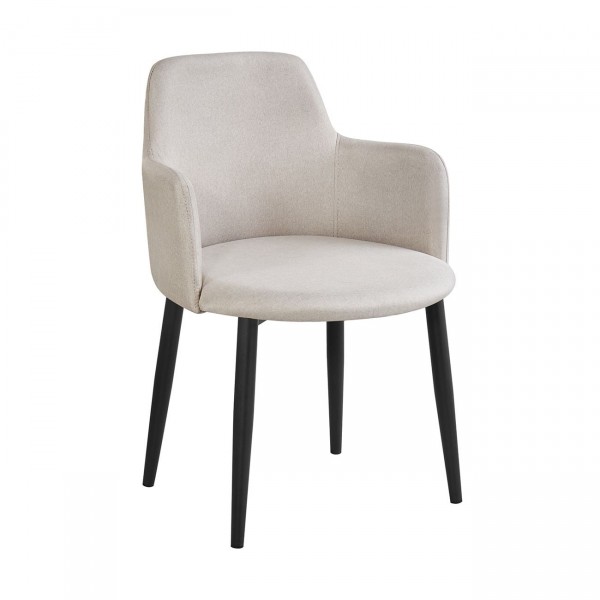 SOUL Πολυθρόνα Τραπεζαρίας Σαλονιού - Κουζίνας, Μέταλλο Βαφή Μαύρο, Ύφασμα Μπεζ SET 2τμχ.
