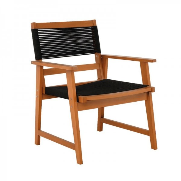 SPRING Living Πολυθρόνα Βεράντας - Κήπου, Ξύλο Ακακία Φυσικό, Rope Wicker Μαύρο