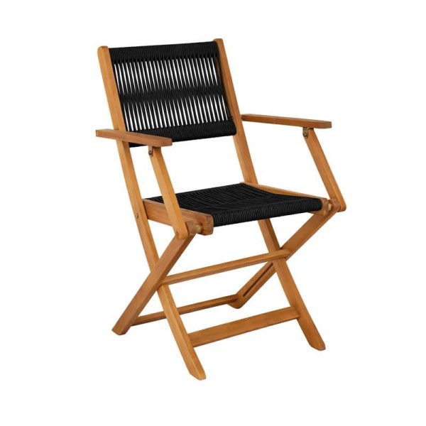 SPRING Πολυθρόνα Πτυσσόμενη Βεράντας - Κήπου, Ξύλο Ακακία Φυσικό, Rope Wicker Μαύρο SET 2τμχ.
