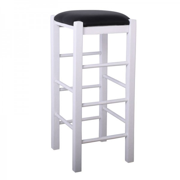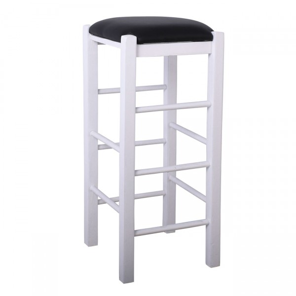 Σκαμπό BAR, Οξιά Βαφή Εμποτισμός Λάκα Άσπρο, Κάθισμα Pu Μαύρο