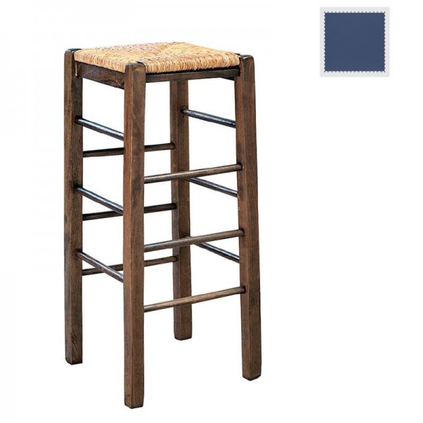 Σκαμπό BAR, Οξιά Εμποτισμός Ανιλίνη Μπλε, Κάθισμα Ψάθα