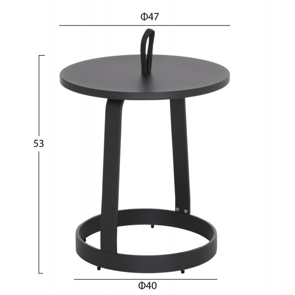 Βοηθητικό Στρογγυλό Τραπεζάκι Εξωτερικού Χώρου MINO | Αλουμίνιο & Σχοινί -- ΓΚΡΙ