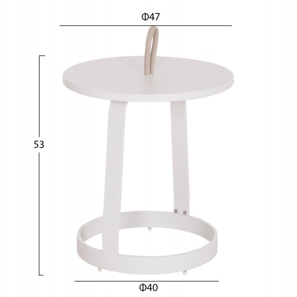 Βοηθητικό Στρογγυλό Τραπεζάκι Εξωτερικού Χώρου MINO | Αλουμίνιο & Σχοινί -- ΛΕΥΚΟ