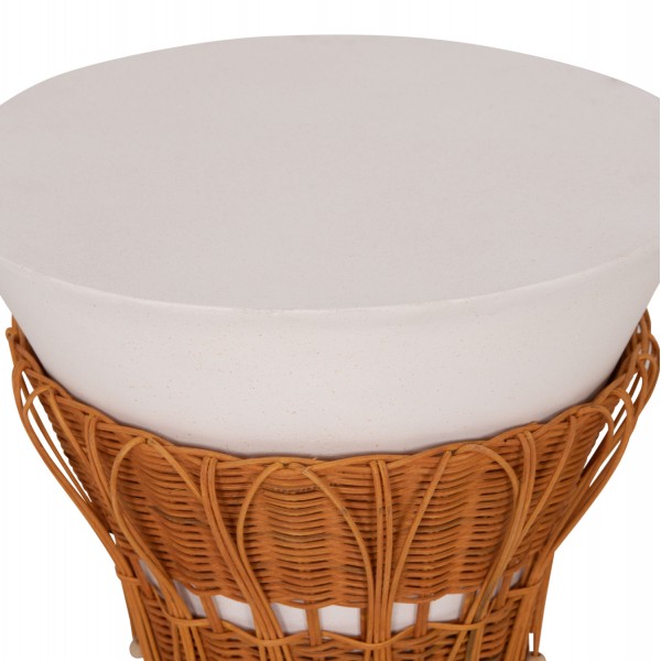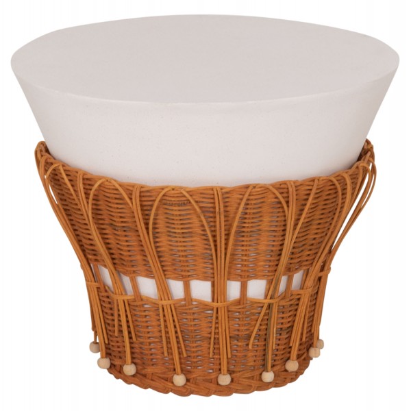 Το βοηθητικό τραπεζάκι PERRAL είναι στρογγυλό σε σχήμα ανάποδου κώνου με όμορφη διακόσμηση από φυσικό Rattan στην βάση του. Είναι κατασκευασμένο εξολοκλήρου από Fiber Cement σε ΛΕΥΚΟ χρώμα και αποτελεί ιδανικό συμπλήρωμα τόσο για το σπίτι, όσο και για επαγγελματικούς χώρους, όπως ξενοδοχεία, AirBnB, κτλ.