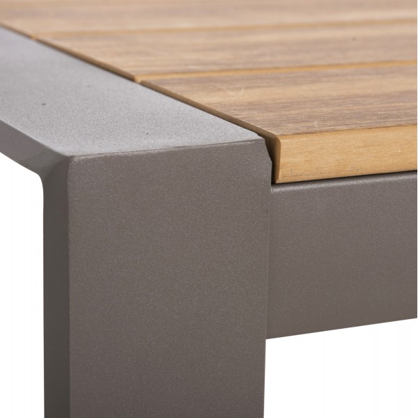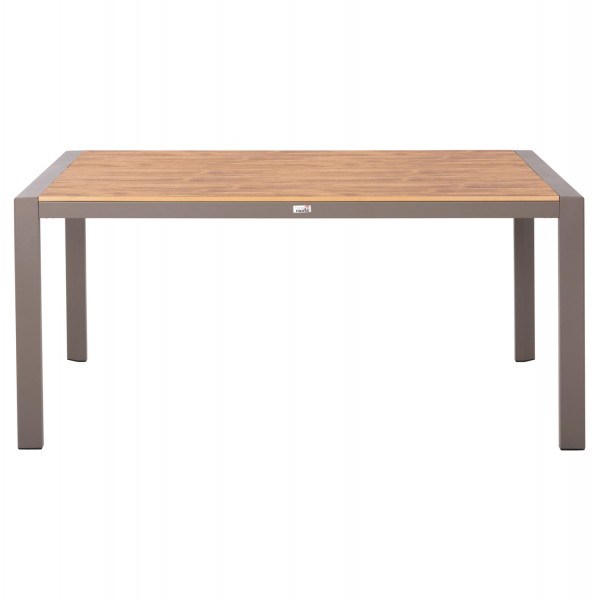 Το GOYA είναι ένα ορθογώνιο τραπέζι για εξωτερικούς χώρους με σκελετό αλουμινίου σε ΣΑΜΠΑΝΙ χρώμα. Η επιφάνεια είναι από πλάκες polywood σε ΦΥΣΙΚΟ χρώμα ξύλου. Πρόκειται για ένα απλό τραπέζι σε κανονική διάσταση, που μπορεί να εξυπηρετήσει 6 τουλάχιστον άτομα.
