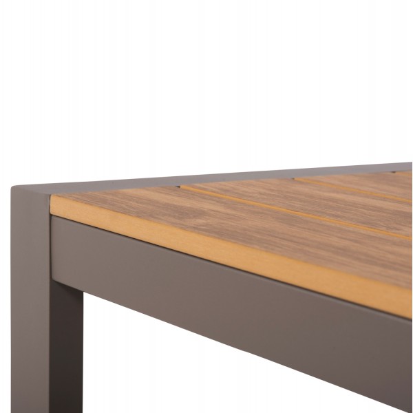 Η επιφάνεια του τραπεζιού είναι κατασκευασμένη από polywood. Αυτό είναι μια μορφή πλαστικής ξυλείας που είναι φιλική προς το περιβάλλον και απαιτεί ελαφρά συντήρηση. Η πλαστική ξυλεία είναι 100% ανακυκλώσιμη και ταυτόχρονα, είναι αδιάβροχη και αντιστέκεται σε όλα τα είδη σήψης και μούχλας.